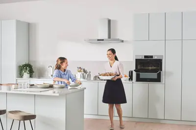 L'innovativa doppia porta del forno Dual Cook Flex di Samsung permette di utilizzare anche una sola parte del forno, risparmiando tempo ed energia. La tecnologia Dual Cook, grazie alla doppia ventola, consente di utilizzare il vano del forno in tutta la sua capacità, fino a 75 l, o di dividerlo in due. Grazie all’elemento separatore si ottengono due forni autonomi, utilizzabili anche contemporaneamente, senza scambi di odori, con temperature e tempi di cottura differenti. Grazie alla nuova App SmartThings il forno sarà davvero a portata di mano: è possibile scegliere le modalità di cottura perfette per i piatti, salvare le ricette migliori e ricevere le notifiche in tempo reale. Piatti nuovi ogni giorno per una cucina sempre più smart.