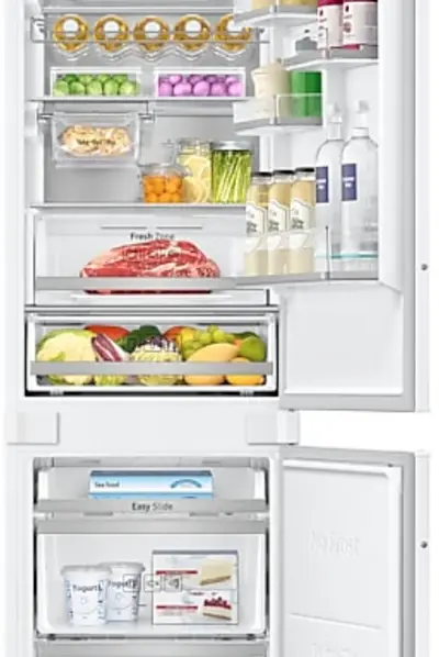 Samsung First è il primo frigorifero da incasso Total No Frost. Questa tecnologia, anche nel vano frigo, è lo speciale sistema di refrigerazione che consente una circolazione ottimale dell’aria, mantenendo costanti i livelli di temperatura e di umidità in entrambi i vani. Tutti gli alimenti, anche i più delicati, conservano intatta la loro freschezza per oltre una settimana. Inoltre è possibile usufruire di tutto lo spazio disponibile anche nella zona freezer, evitando le noiose operazioni di sbrinamento periodiche. La tecnologia Twin Cooling Plus utilizza due circuiti di raffreddamento separati e indipendenti, uno dedicato alla zona frigo e uno dedicato alla zona freezer. È quindi possibile gestire in modo indipendente la temperatura presente nei due scomparti, evitando scambi di odori e garantendo il giusto grado di umidità. La funzione Smart Cooling, per la prima volta su un frigorifero da incasso, consente di variare la temperatura del vano freezer a seconda delle tue esigenze, scegliendo tra 4 diverse modalità. Il compressore Digital Inverter permette la modulazione della potenza erogata in maniera proporzionale alle effettive necessità. Rispetto a un compressore tradizionale consente un risparmio energetico fino al 20%. Lo speciale rivestimento fonoassorbente ne garantisce la silenziosità, mentre la garanzia di 10 anni ne testimonia l’affidabilità. La capacità netta di Samsung First è di 256 litri mentre l’altezza netta è 177,5 cm.